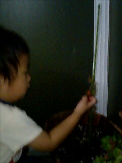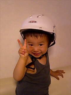 我が家の家庭菜園 最初で最後の収穫です 毎日 『まだダメよ~』 といわれ続け やっと許可が!張り切って 収穫!!! こんなけ・・・・♪~( ̄ε ̄;) 我が家に元気を分けてくれたトマトちゃんちゃんとパパ・ママ・息子分だけ実ってくれました♪(ポジティブ思考) きれいに洗って いっただきまぁす!っと思ったら トコトコトコトコ・・・パパのもとへ行き『パパも どーーじょ!』(いやいや、まだ自分食べてないし・・・) お風呂掃除中のパパ『後でちょーだい』・・・『ママも どーじょ!!』 えぇぇぇ?まさか お毒見ですか?? 皮は 硬かったけど 甘くておいしかったです♪ 息子も『あまーい!』って食べました(皮は 吐き出してましたが・・・) あっという間に 終了してしまった 家庭菜園でした☆ ******************************* 『いもき~~~~~~!』(気持ち良い~)と 扇風機に大接近 お約束の 『あ”~~~~~』も やってます なぜ 室内でヘルメットをかぶってるかと言いますと・・・ せっせと 一人でかぶる練習をしてたんですすごい集中して やってましたでも 目がよっちゃってて 怖いです(;-_-;)真剣モードになると 出てくる舌も怖さ倍増してますなぜだか 立っちゃってる小指も痛々しいです・・・ 我が子ながら ちょっと気持ち悪い・・・・ 見たいですか?? では どうぞ