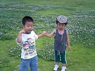 に~にが 近くの公園まで遊びに来てたので ご一緒しましたぁ=^∇^*= ひろ~~い芝生を走り回る二人『ひこうき!』と走りまわる に~にの後ろを追いかけていました♪カメラに気づきとっさにポーズ!! 二人乗り=^∇^*==^∇^*= 怖がってた トンネル滑り台も に~にに刺激され一人で挑戦☆ドキドキ・・・・・ できたぁ♪ 何でもに~にの真似が良いのに・・・に~には息子の『か~し~て!』に応えてくれる優しいに~になのに・・・に~にの『か~わ~って!』を無視する息子(T△T)・・・ パパ・ママに怒られてました(;-_-;)