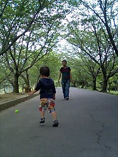 『ちゃーちゃん』が進化し『みちゃみちゃん』と呼べるようになりました 『みちゃみちゃん』のリクエストによりカラオケへGO!!♪ぞうさん♪げんこつやまのたぬきさん♪アルゴリズム体操♪アルゴリズム行進♪キスしてほしい熱唱してきました 踊りも激しかったです『どーお??』と拍手を求めてるのか?? さんざん暴れた後は『みちゃみちゃん』のお膝で休憩みちゃみちゃんにデレデレな息子でした☆ *******************************景品で貰ってから一度も触ってなかったタコ焼き器が初☆出動!!くるくるくるくるくるくるくるくるくるくるくるくるくるくるくるくるくるくるくる楽し~~~~~~=^∇^*= 普通にタコを入れてたけど パパがつまみ食いしすぎてあっという間にタコ完食・・・・タコの代わりに 豚肉とキムチを入れてみたりハムとチーズを入れてみたり・・・・最終的にはマヨネーズまみれ(←名古屋人丸出し)にして食べるからなんでもコイ状態でした。 どれも美味しかったブタキム焼きはビールによく合いました 美味しくて、楽しかった♪また やりたいなぁ(-^□^-) *************************** 土曜日は梅雨の中休みでした お友達と近所の公園で遊びました水鉄砲で水やりしてますσ(^◇^;) みんなで虫探しだんご虫ゲット!! 巨大みみずゲット!!息子も『み~~~じゅ!』と大興奮私もミミズはへっちゃらで触れるけどこんなに大きいとさすがに気持ち悪い・・・(;-_-;) でも子供ってホント虫が大好きですねこの後もひたすら 虫探ししてました日陰で涼んでいられるからママたちもおしゃべりを楽しんでいました♪ 枯れ葉の山をひっくり返した時の子供たちの歓声とママの悲鳴・・・笑えたわ。また やりたい。