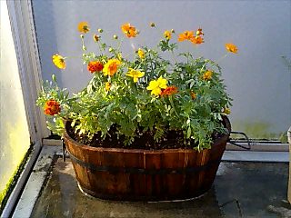 我が家の家庭菜園もあっと言う間に終わってしまいしばらくは お花を楽しもうかと思い人生初☆寄せ植えにチャレンジ!!・・・と言っても無知な為 無難そうなのを選んできました マリーゴールドと黄花コスモス どっちがどっちだか わかんないね・・・・しかも 窮屈そうσ(^◇^;) 息子が『これ!』と手にバラを持ってきたので『これはいらないよ』って返しても又持って来て・・・こそっと返しても又持ってきちゃうのでバラも購入 ママもお気に入りを購入して合せてみたら・・・こんな感じになりました kaho-mamaちゃんと ねーねと遊んでる間にせっせと作業してました出来上がりを息子に見せたら『花!きれ~!!』って喜んでくれるかと思ったのに・・・・ 『トマト なーーーい!!』だって(T△T)・・・ 枯れ枯れで放置されてたトマトちゃんでもちゃんと解ってたんだね~ ちょっと 驚きました もう少し大きくなったら 一緒に土いじりできるかなぁ~