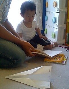 今日の午前中 熱は37度代で落ち着いてましたが夕方からだんだん上がってきて38.2度。。。昨日に比べたら良くなってきた?? でも やっぱり元気はあるみたい走り回ってはゲホゲホしてます 落ち着いて遊びなさ~い!!って事で息子の小部屋 作っちゃいました すごい 気に入って ちっとも出てこない しばらくすると ブツブツ独り言が聞こえだしました 『あら~熱でとうとう・・・!?』 と 心配になって覗いてみると・・・・・・・ 絵本を読んでました=^∇^*= こんなうす暗い所じゃ 目が悪くなっちゃうよ~ と言う事で・・・小部屋のグレードアップ!! うわぁ~ ちょっと羨ましい。。。 入れて欲しいなぁ 帰ってきたパパも 同じ事を思ったようで中に入ろうとしたら・・・ 追い出されてました 息子の秘密の小部屋 しばらくブームになりそうです