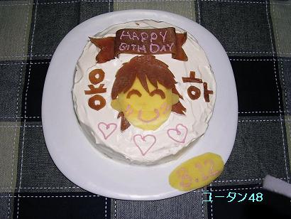 みなさ~~ん あんにょ~~~んです♪~~~センイルチュッカハムニダ~~ ヨンハく~~~ん~~~♪日記に書くのは1日遅くなりましたが・・・・・・8月12日はヨンハ君のBithdayでしたね~~皆さんはお祝いしましたか??前、、バレンタインの時・・・・ヨンハクッキーを作ってここに載せましたが・・・・今度はヨンハケーキを作りました~~「似てないよ~~~~」と言われそうですが・・・・・コレが限界でした~~でも、、見た目は悪いですが、、、美味しくいただきました!!(中はチョコケーキです)もちろん、、恒例のワカメスープも登場・・・・あとは、、ケーキに時間がかかったので、、サムギョプサル・・・と、、、、、勝手にヨンハ君の誕生日祝いを家族に嫌味を言われながらした次第ですでも、いつかはヨンハチングみんなと、、ヨンハの誕生日をお祝いしたいな~~~~