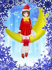 およそ1ヶ月ぶりに、アバターのお着替えしたのね。(ひろみっく(any) は2ヶ月ぶりなのね。)●12月1日(木)午後:12月なので、『クリスマス』特集のサンタ娘コーデなのね。 今年の新着アイテム『サンタベルドレス』のシリーズでまとめて みたのね。・・・まずは、オーソドックスにレッド&ホワイトね。 だから、肩かけバックもサンタっぽくホワイトなのね。 トナカイが牽くソリの代わりに、三日月に腰掛けてるの。 マフラーは、三日月に合わせて、トパーズオレンジなのね。 <左:楽天アバ ひろみっく(hiromic)> 背景は、おととしのクリスマス特集の『白銀の世界』なのね。 フレームは、今月のコンプ限定アイテムね。 <右:妹分アバ ひろみっく(any)> 去年・おととしのクリスマス限定アイテムは持ってないから、 入手可能な背景の中から『ホーリーナイト』を選んだのね。 コンプに向けて地道に挑戦中なので、『クローバーフレーム』 のまま、変更なしね。