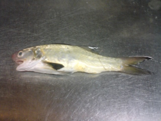 久しぶりの知らない魚の更新です。 多分川の魚だと 思うんですけど・・・・・ ボラに 似ていて 尾ひれが長く 鼻が 少し高いかな? ボラとかの幼魚とは 違うし・・・・・・・ 明日からは 10月ですね 小さなことは 忘れよっと・・・・
