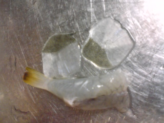 これも 一応 食べれます。 と 言うか 丸ごと いけます。 小河豚の こフグ? うろこが 大きいのでは なく フグが 小さいのです。 煮付けて にこごりにしたり 吸い物の椀種に しています。 からあげもいいですね。