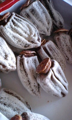 突然ですが・・・ 去年の秋、我が地方、猿(あっ、猿は日常茶飯事ですが・・・)や クマが、よく、出没しました。 そして、実家の柿の木も、獣たちに、食べられる前に、とらないといけなかったらしく コンテナ2杯分ぐらいとった実家。 当然、行く当てのない渋柿ちゃん達は、我が家にも、押し売られてやってきました(^^;) でも、ここ近年、猿の被害がすごいので、ご近所のおばあちゃん方も、 作りたくても作れない状況 猿は、一度、味を占めたら、再々やってくるそうなので 結局、断ったにもかかわらず、強制的に、いただいてしまった渋柿。 義母は、仕方なく(^^;) 干し柿を作ってくれました。 干し柿は、風に当てないといけないそうで、本来は、2階や、縁側に干すのですが、 義母は、洗濯物と一緒に、洗濯竿へ。 猿が出てきたら、猿さんに見つからないように、玄関に。 失礼ながら、きっと、うまくできないだろうな~と、思っていた、私や旦那さん。 でも、見てください この干し柿・・・・ おいしそうじゃないですかぁ この粉を吹かせるのが、なかなか難しいそうで そして、お正月、帰ってきた、実兄が、この干し柿をみて、たいそう喜んでました。 今まで、パンに入れるために、わざわざ買っていたんだとか しかも、1個100円で 干し柿って、高いんだ~と、びっくり 来年からは、おまかせあれ 実は、行き場に困ってしまった柿さん。 20個ほどは、私の、仕事先の、老人ホームへ。 ここには、猿が出ないから、大丈夫と、中庭へスタンバイ 入居者の方に、作り方を教えてもらいながら・・・ というか、ほとんどしていただいたのが正解ですが(^^;)つくったんです。 さすが、年の功こちらも、立派な柿ができました お正月に、皆さんでよばれたと、喜んでいただけました 来年は、たくさん作って、売っちゃおうかしら 猿には注意ですけどね