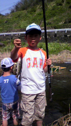 我が家のゴールデンウィーク 1・2・3日は、次男君の野球の大会・練習試合と漬け 4・5日は、休みだったのですが、旦那さんは4日も仕事・・・ なので、子供達をつれて、近くであった渓谷祭りへ 魚釣り教室に参加した息子君 なんと、あっという間に ケット~ その後、まゆまゆもつかみ取りに参加し 合計7匹 すごい・すごい お昼に焼いて食べたら、超 おいしかったです そうそう、まだ小さいからとつりに、申し込みをしなかったまゆまゆだけど・・・(^^;) この春 1年生になった友達のひびちゃんをみつけ、強引に一緒にしてました(^^;) 偶然にも どりぁ~息子と めんこい娘 わらえますぅ~