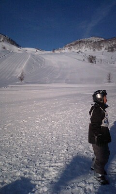 昨日までとは打って変わって、最高の スキー日和 でした みてください この、きれーな雪 そして、教室がはじまりました。 去年までは、滑れなかった子供達も、今年は、スイスイ 子供って、すごいです 私は、先生の補助で、2年生の、一番、初心者組と滑ったんですが・・・・(^^;) 午前中は、まさしく、基本に忠実に(^^;) 膝曲げて・・・両手を前にだして・・・ 私も、子供達同様、1から 基本を教えていただきました 先生って本とすごいです でも、 スキーを始めて、20ン年、なかなか癖は直りません(^^;) そして、そんな 私達の横を 『おかあさ~ん ばいばい~』 と、滑り去っていく、次男達の班・・・長男達の班・・・(^^;) でも、二人とも、基本が甘いような・・・ 昼からは、リフトに、いっぱい乗りました あ~。でも、ボーゲンばっかりしていて、足が痛い いつまでも若くないな~と実感した 一日でした