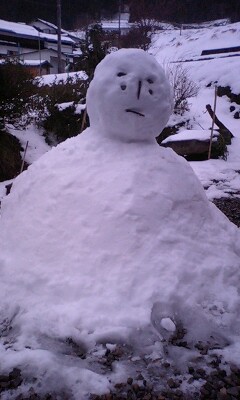 暖かい日が続いて、春近しなんて、浮かれていたけれど・・・ またまた、雪がふりましたね~(^^;) 昨日、仕事から帰ってくると、子供達と、子供の、友達達で、雪だるまをつくってました。 なんか、かわいい~と、ほほえましく思った私 そして、今朝、子供達がへいくのに、一緒に、外にてでてみて 夜中の、雨のせいかどうかは、わかりませんが・・・・ おじぎをしていました あまりのかわいさに、同じ登校班の、友達も、見に来て、みんなで かわいい我が屋の、 雪だるまちゃんでした