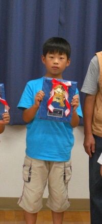 続きの前に・・・ 昨日 偶然に、syokoさんにあいました~ 久々のご対面に、話し込んじゃって、ごめんなさい。 で、プログ更新したことをご報告(何ともすごいタイミング そのあと、今度は、花ママさんにも、ご対面 もう、ビックリしすぎです 花音ちゃんがしんどそうだったので、引き留めはできませんでしたが ちょこっとでも、あえて、嬉しかったです。 みなさ~ん また1107会 開いてくださいね~ さてさて、その将棋の但馬大会の、続報です って、オーバーですよね(^^;) まぐれで香美町大会に優勝してしまった次男君。 30日に、豊岡の文教府で行われる但馬大会に参加することに(^^;) 当日は、神鍋マラソン帰りの渋滞に巻き込まれ、 普段なら、30分で行く日高市内まで、1時間のかかってしまい あせったあせった 旦那さんは仕事だったので、私のつたない運転だったのですが、 何せ、場所がわからない ナビを頼りに・・・のつもりが、UFOのパチンコ屋を曲がったあたりで 『目的地近辺です。音声案内を中止します』 って 近辺違うやン~ 誰かにきこうにも、時間がせまっていて、止める余裕すらなくて 何とかついたときには、汗かいてました。私 ある意味、命がけの、ドライブでした さてさて 但馬大会なんて、香美町と、またレベルが違いすぎて 惨敗するだろうな~と内心思いつつ 『上位になったら県大会で、神戸に行けるかもよ~』と、次男君に、葉っぱをかけた私。 (神戸に行きたいのは私ですが(^^;)) しかも、豊岡市なんて、日高や出石や・・・いっぱいの地区から、 予選を勝ち抜いてきたんでしょうから、レベルもきっと高いはず(^^;) まずは 一勝を目標に 一勝したときには、ここまで来た甲斐があったな~と、ほめまくりました。 そして、2勝・・・3勝・・気づけば、ベスト4入りしていました それだけで、母 大満足でしたが・・・ なんと・・・ 次男君。低学年の部で 優勝 しちゃいました~ わぁ~ 夏休み、最後の、快挙です 次男君に負けた 2位の子は、泣いていました。 勝負の世界の厳しさを痛感 さてさて、神戸はいついけるの~なんて思っていたら、 将棋を指す子が、年々少なくなり、去年から、県大会は、なくなったそうです 次男君は、力を試したかったみたいだけど・・・・・・残念 私も、おこぼれに預かって 都会の空気を吸いたかったけど・・・残念 でも、何はともあれ、次男君。よく頑張りました