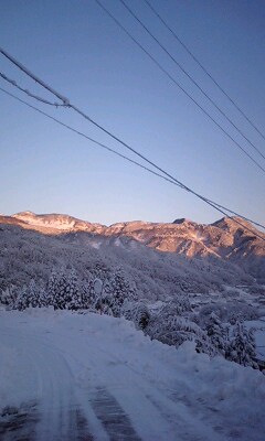 この数日、すごい ですね 天気予報のさんが、大泣きしていましたもん こんな、日に限って、仕事の私。 国道とはいえ、アイスバーンの道路 命がけの、通勤ですみんなそうでしょうけど(^^;) 普段より、30分も、速く出たにもかかわらず、ついた時間が、いつもと一緒って、 悲しすぎますぅ~ でも、今朝は、とっても、いい ちょうど、陽が当たっているところが、スキー場です 我が家の前です(^^;) すごいでしょ。 でも、これぐらい、序の口に思われたのか、 今日は、除雪車は、来ませんでした 今夜から、まただとか 天気予報どうり、またまた、降っています ぼちぼち、勘弁してくださ~い
