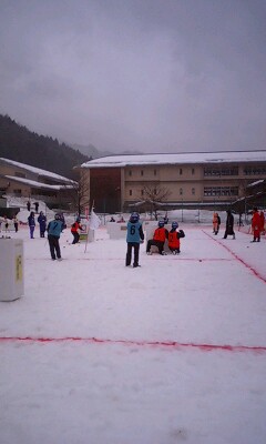 今日は、でしたね~ このの寒い中、 兵庫県雪合戦大会 がありました。 ドッヂボールみたいに、雪玉を投げ、当たった相手は、場外へ。 そして、当たらないように、シェルターに隠れる・・ 最終的に、相手チームの旗を、とった方。 または、人数の多い方が 勝ち それを2ゲーム。 が、だんだん降る中・・・ ジュニアのの部。レディースの部。一般の部。 兵庫県各地から、たくさんの方々が参加されていました。 開会式の時には、ギャラリーあわせて、500人ぐらいいたかな~ 選手の、みなさん、がんばっていました。 そしてもわが家の、息子君達も・・・ 赤のウェアーが、次男君。 監督の、作戦どうりシェルターの間をいったりきたり・・ そして、次男君達の、チームは、1対1になり、 サドンデスゲームに。 シェルターの上に、セットされた雪だるまに、玉をぶつけ、先に倒した方が、勝ち サッカーのPK戦みたいな感じなのですが・・・ そこで、負けてしまいました 次男君、玉が当たったのに、力が足らなくて、たおれなくて、アウトでした 残念 そしたら、次男君・・・ないてました・・・ みんな、びっくり とても、悔しかったそうです・・・ そんなこと【ってゆったら失礼かな】 で、泣いてる次男君に、 私も、びっくり あの寒い中、よく、頑張ったと。め~いっぱい、ほめまくってあげました 来年も、頑張ってね~ でも、今日は本当に、寒かった・・・来年は、天気になってほしいな~(^^;) と、密かに願う まゆママでした(^^;)