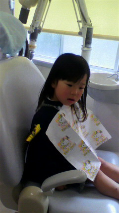 昨日は、子供達の 歯医者さん といっても、4ヶ月に一度の定期検診なんですけどね~ 上二人は、ほっといても大丈夫なのですが・・・ まゆまゆは、まだ一緒じゃないと入れません まゆまゆは、1歳半で虫歯になり、先生にも 「この歳でこんな虫歯は見たことがない」といわれたほど・・・ 添い乳が悪かったのか・・・と反省し(^^;) 思い切って断乳したのです が、母の苦労は報われず たいした成果は、見られず 3歳までプチ嫌みを言われ続けてきました が、3歳を過ぎると、進行が落ち着き、虫歯はストップしたまま。 この1年以上、定期検診だけで クリア しています 3歳までは、歯医者さんが大嫌いで、ひどいときには、車から降りず 診察台に乗るときは、衛生士さん含め、3人がかりで押さえつけてたほど(^^;) 大泣きしていたのに まゆまゆも、お姉ちゃんになったのか。 全く泣かなくなりました~ ちょっと・・・いやかなり不安そうではありますが(^^;) 泣かずに大きな口をあけ、歯科衛生士さんに掃除をしてもらい、フッ素も塗ってもらい、 そして、苦手な(^^;)男の先生にも見てもらいました 先生にも ほめていただき、上機嫌な まゆまゆ あ~んど私。 でも やっばり最後に一言 「まゆちゃん、がんばっとるな~。この調子でがんばりや~。虫歯のある女の子はも てへんで~。女の子は、歯が命やで~。」 って これからも、歯磨き 頑張ります 先生にプチ嫌みを言われないように・・・