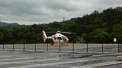 豊岡へ行ったとき。 ちまたで話題の ドクターヘリを見ました~ 子供達と 「と一緒だぁ~」 と見入ってしまった(^^;) 「乗ってみたいな~」と次男君・・・ 乗りたい=緊急性のある患者さん・・・ いえいえ 遠慮しときます 追伸・・このをみたまゆまゆに 「誰がとったんこのぼう(フェンス)邪魔」 としかられた(^^;) ほんと、達者になってきたわ