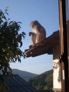 以前 ブログにのせたくて、撮っていた写真があります 我が家の蔵の屋根にのぼり、蔵の横にある グミ(ごんべとも言いますが)をたべている 猿 相変わらず 天然サファリは健在です をとりにいこうとすると、『怖いから行かないで~』 と、まゆまゆが大泣きするので(こわけりゃ見なきゃいいのに(^^;)) でぱしゃり という私も、怖いから、窓の鍵は、もちろん、家中の鍵をかけ・・・ 超ドアップを でも、画像悪いし・・・ブレブレでした