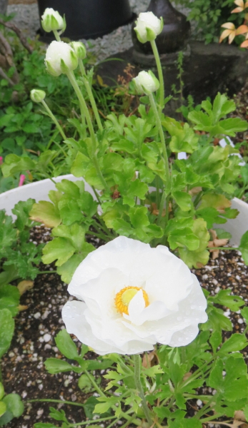 数年前から育てているラナンキュラス・ラックスは花が咲いた大株を購入したので、球根からは初めてのチャレンジでした。