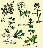 今日は七草。春の七草で作った粥を食べる日である。「セリ、ナズナ、ゴギョウ、ハコラベラ、ホトケノザ、スズナ、スズシロ」は諸賢の周知の通りである。拾い物の解説画像。スズナは蕪、スズシロは大根であることも絵を見ると判りやすい。拙宅でも夕餉にありがたく粥をいただいた。個人的にはナズナの味が一番強いような気がする。春の山菜を先取りしたような個性の強い味と匂いは、未だ遠い雪解けを予感させる気持ちにさせてくれる。こういった季節感や節目が感じられる食材はとても大事だと思った。