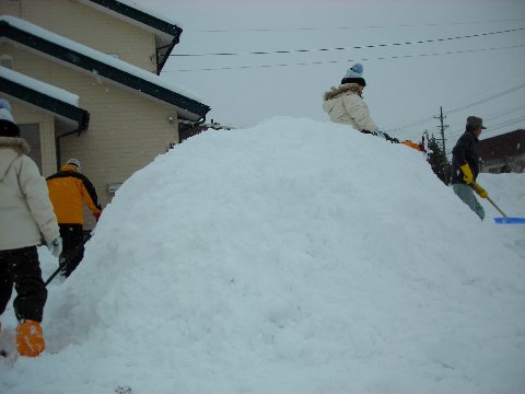 昨日のスキーの後は大町市の知人宅で「かまくら」作りをした。ここ数年はそれほど雪が多く無かったので大きいかまくらは作れなかったが、今冬は年末からコンスタントに降雪があったので、材料の雪は充分にあった。製作中。雪を小山のように盛り上げて行く。あとで落盤しないように圧力を加えて雪を潰しながら積む。なので、積んだ量の割に山がなかなか高くならない。掘削作業。山の高さがある程度に達すると内部を掘る。中腰で掘るので結構くたびれる。完成したかまくら。大人5人程度は入れる大きさになった。早速中でビールとお汁粉をいただく。妙な取り合わせであるが、大人4名で2時間みっちり掛かったので、心地よい疲労感に珍しく甘い物が美味しかった。かまくらといえば秋田県の横手市が有名である。残念ながら冬季に行った事は無いが、同じ秋田県の乳頭温泉郷「鶴の湯温泉」へ真冬に出掛けたときには降りしきる雪の中、正門前に立派なかまくらがあって良いモニュメントとなっていたのを覚えている。