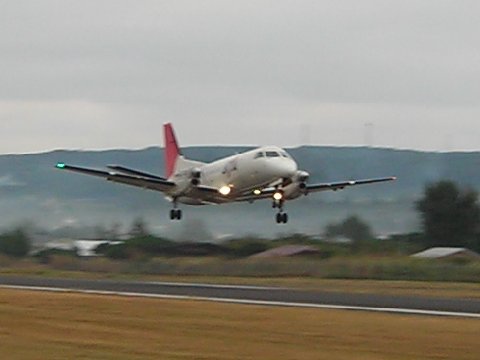 各種メディアで報道されているように、経営危機に陥っているJAL再建の一環として路線の大幅な撤退や縮小が行われる。また燃費の悪い旧式機材の一斉退役なども予定されている。地元松本空港を発着する路線もこの再建策の対象となり、今月末を持ってJALは全面撤退することとなった。松本空港の旅客路線は昭和40年代にTWA(東亜航空)で始まり、航空会社の合併などに伴ってTDA(東亜国内航空)→JAS→JAL→JACと運行会社は変わったが、約30年に渡って路線を維持してきた。松本空港からの路線は現時点で大阪(伊丹)、福岡(板付)、札幌(千歳)の三路線である。過去には仙台、大阪(関空)、高松、松山、広島線もあったが、搭乗率が向上しなかったために現在は飛んでいない。また2007年からMD87型ジェット機退役に伴ってジェット化された空港でありながらプロペラ機のDHC8-400型機が使用されている。機材がダウンサイジング化されてしまったのは、所在地の標高が高い事などの要因も有ったが、利用率が芳しくない事も大きな理由であった。6月1日からは静岡に本拠を置くFDA(富士ドリームエアーライン)が札幌線と福岡線を継承することとなっている。これとて搭乗率が伸びなければ路線が未来永劫維持される保証は無い。地元としては新生FDAの利用を一層促進しなければならないだろう。大阪伊丹線はFDAに継承されないために今月末を持って40年近い歴史を閉じることとなった。最後の機会となるだろうから本日大阪線に乗って1泊2日で戻ってくる事にした。この路線は大阪の人には割合都合がよいダイヤであるが、松本の者には時間帯があまり良くない。夕方大阪着、朝大阪発なので、1泊2日だと何も出来ない。全く無駄な旅行とも思えるが、松本空港でJALの飛行機に乗る事はこの先出来ないだろうから思い切って行って来ることにした。写真はかつて松本へも就航していたサーブ340型機。(2008年末に喜界空港で撮影)松本空港は地元すぎてしまったためか YS-11もMD-87もDHC8-400の写真も撮っていなかった。これから乗る前に折角なのでカメラに雄姿を収めて来るつもりである。