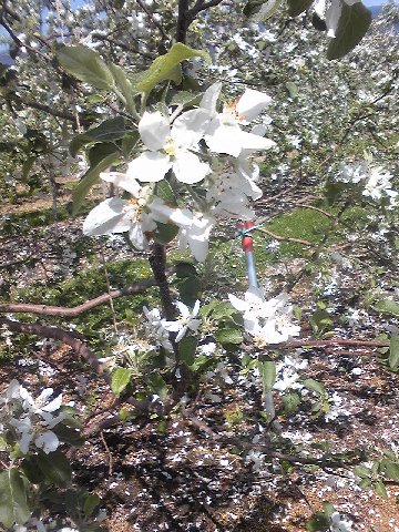 今日は予報通り良く晴れてこの時期らしい爽やかな天候となっている。松本郊外では今日・明日あたりが田植えのピークであろう。また名産のリンゴもこのところの暖かさで一気に開花して満開に白い花を咲かせている。波田町付近のリンゴ畑で。田植えを待つ水田とリンゴ畑。後方に少し見える山は北アルプス。リンゴの生産高は青森県が圧倒的に多く全国の半分強(約53%)、長野県は大きく引き離されての2位(約21%)である。以下岩手・山形・秋田・福島と東北の各県が続いている。[青森県HPより、H18年実績]長野県でも基幹となる農業生産物のひとつである。大型連休も最長の人は11日連続となって今日明日が最終である。今年の連休は本当に天候に恵まれた。信州もそれなりに多くの観光客が来てくれたのだろう。