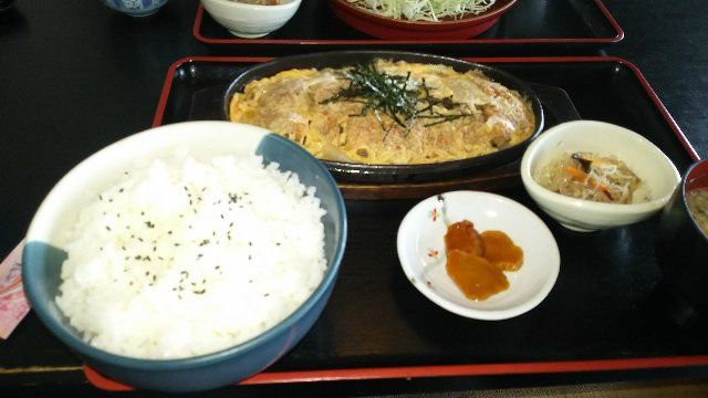 27日の昼食は松川町のたかさごで摂った。煮カツ定食。ソースカツも大好きだが、卵とじのカツもまた美味しい。ステーキ皿に載って出てくる所もよい。ステーキ皿は普通自宅にないので、外食らしい器の一つであろう。揚げたて煮立てを美味しく戴いた。