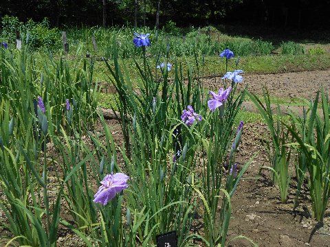6月3日、青梅市の吹上しょうぶ公園へ花菖蒲を見に行ってきた。(その1)この菖蒲園は青梅線の河辺駅からバスが出ており、またタクシーでも千円以内で行ける場所にある。つつじ寺として知られている塩船観音寺からも直線距離で1キロ程度である。また、東青梅駅からだと徒歩圏内でもある。自分が河辺駅前へ着くと、あいにくバスが発車してしまった直後だったのでタクシーで菖蒲園へ行く。菖蒲公園のエントランス入り口の池は蓮であった。池の脇を通って券売所へ向かう。入場料金200円を払って菖蒲田に進んでゆく。色々な種類が植えられた花菖蒲。早生種から晩生種まであるが、やや時期が早い感じであった。もう1週間くらいするとさらに咲き揃うだろうか。紫系の色が多いが、白っぽい花もあった。紫色の濃い種。艶やかに見える。菖蒲田はこのような感じで区画が仕切られて栽培されている。(次回に続きます)