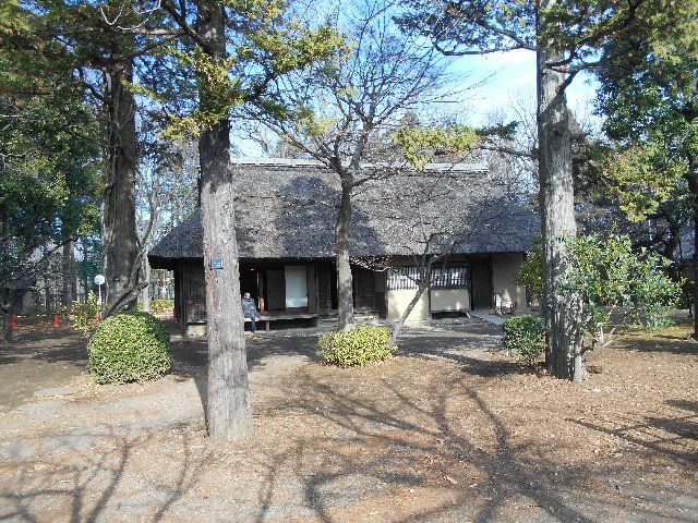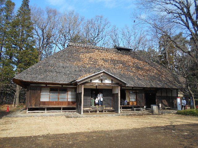 三鷹にあった農家(名主を務めた家柄)。江戸時代後期築。玄関が特徴的である。