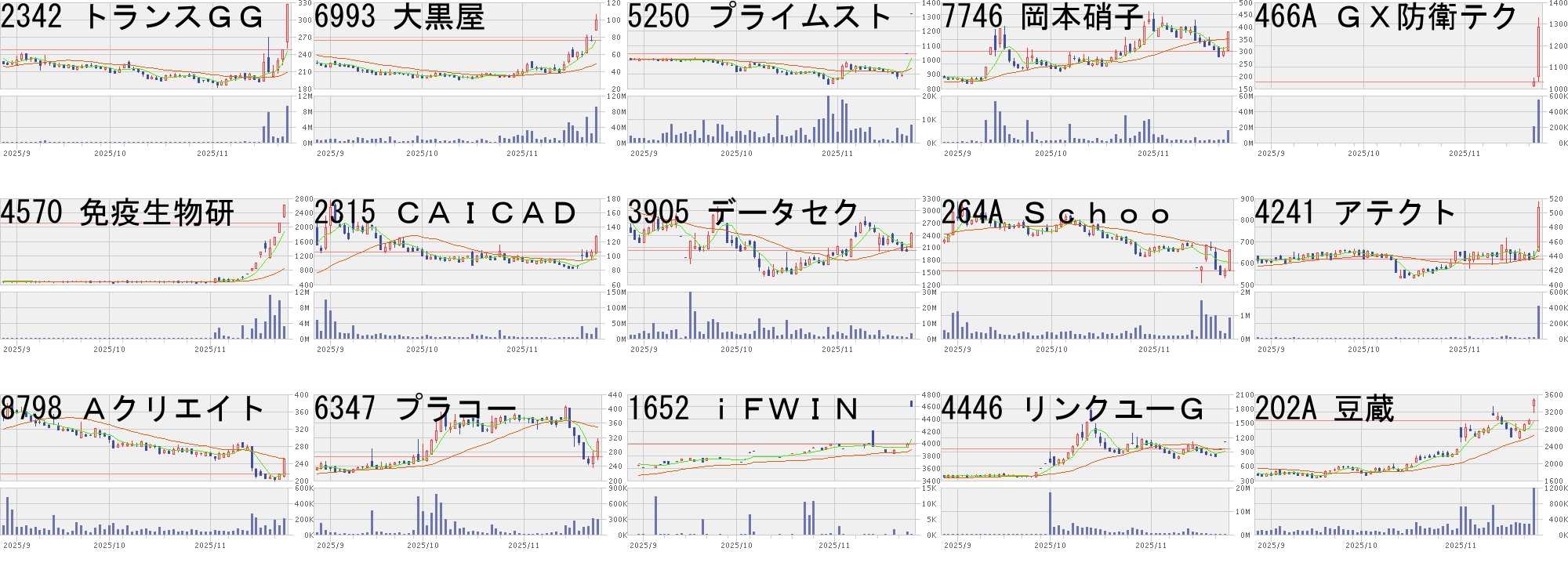 コード,銘柄名,市場,株価,前日比,前日比.1,出来高,PER,PBR,利回り 2342,トランス…