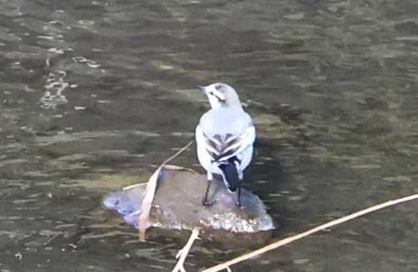 キセキレイ ハクセキレイ は見ていましたが 今回 セグロセキレイ に逢えました 川岸の べとべとを歩いています セグロセキレイ(背黒鶺鴒) 後ろ姿 頭から背中 尾まで 黒いです 川の中に入って行きました こちらを向いてくれないので 見れませんでしたが 肩~頬~胸もつながって黒いです でも 腹黒くはない そうです(^^) 水面に映ったお腹も 見てあげて下さい