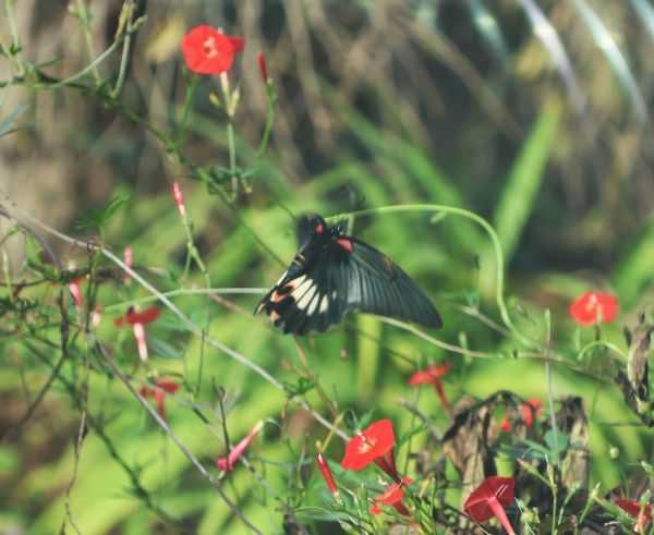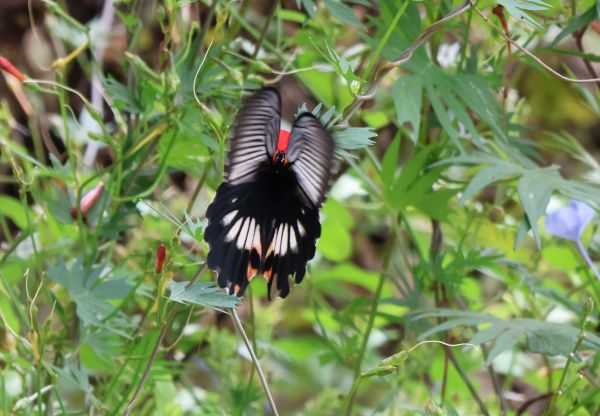 今季は もう会えないと思っていた揚羽蝶が 庭にいました! 散歩に出ようと玄関を出たら ええ~~ 心の中で歓喜の雄叫び (^0^) 黒でも 華やかだわ~~~ こういうデザインは 誰が考えて誰が作るのかしら? 羽を持ち上げて ちょっと移動 よほどおいしいようで 蜜に夢中です 蜜吸いに使っているのは 口吻(こうふん)というストロー状の口で 普段は クルクルと巻かれているのです こんな蝶って 居なかったと思うのですが ナガサキアゲハらしいです 生態系は変化します ふわりと飛び上がって 去ってしまいました 「ありがとうね ゆっくり付き合ってくれて」