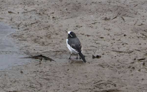 ハクセキレイのオスが少ない と思っていましたら 散歩道の前に 「いるよ~~」 と 2羽 現れました 私が進んでいく方向です 向こうからも 散歩の人がやってきます 1羽は向かって右側の畑の方へ行きました 残った1羽は度胸がよかったです なかなかハンサム(^^) 散歩の人が すぐそこまで来て ようやく川へ下りていきました ↑ メス 比べると オスは黒いです 特に黒い帽子です