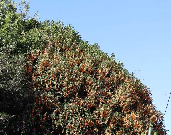 キンモクセイは背が高くなる植物です 上の木は 散歩で見かけましたが 10m近いのかしら 驚いてカメラでパチリ! 帰宅したら お隣のご主人がブロック塀にのって キンモクセイを剪定中でした 「写真撮らせて下さい」 と言いながら パチリパチリ ご主人は 危険な塀の上を移動して 枝を数本切りました キンモクセイが欲しい と 言ったと思ったそうです 危険な思いをされて 無事で本当に良かったです(><) かなり耳が遠くなられたそうです 金木犀ドキッと香りを手渡され