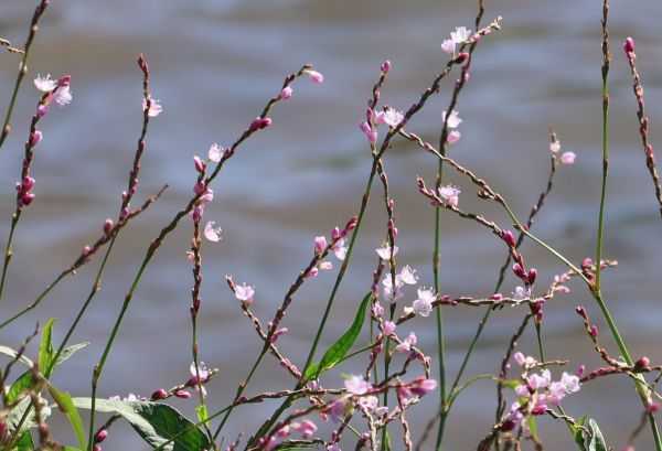 シロバナサクラタデ は 公園管理された所に群れていますので 何度か見ています シロバナサクラタデ(白花桜蓼) 長い名前ですが 先に サクラタデがあって その白花なのでこの名前だそうです 今日 いつもの散歩道で「えッ?」 土手の下 川すれすれに 薄紅の小花たちが見えました 草刈りしてくれたので 見えるようになったようです 残念ですが 危険で下りていけない場所です ズルって滑って ドボン なんてなったら大変 サクラタデ(桜蓼)のようです・・・ どこか近くで見たいものです
