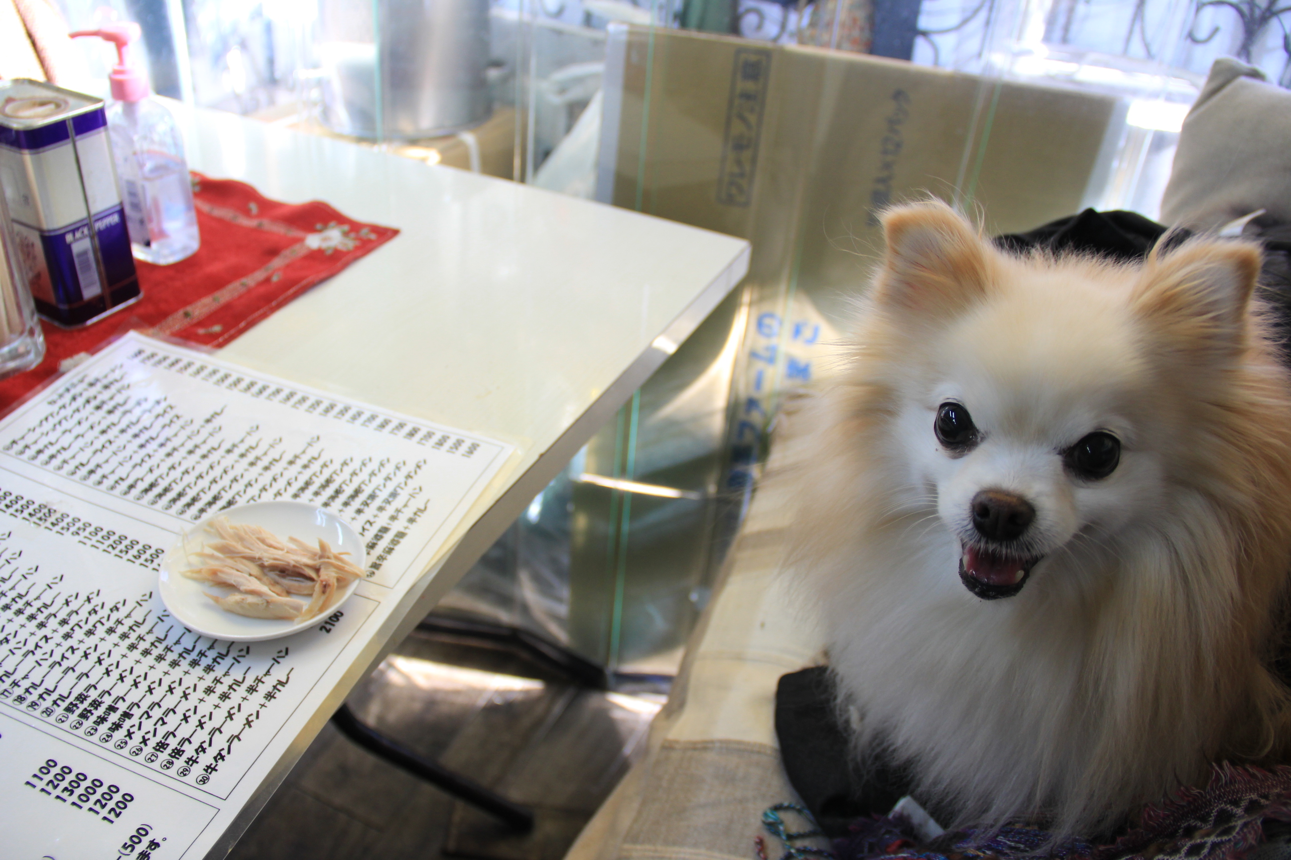 1/5朝の体重:プチ大地メレミントルチレ4.7kg********************************************************コーティングの予約をしていたのでスタンドへ車を預けてから久しぶり(8年ぶり!)にザ・ラーメン屋さんでランチ(店内わんこ)わんこには鶏肉を出してくれるよもう自分のってわかってるね何にしようかな・・・と、悩むふりをしてみる(笑)セットメニューの半海老ワンタンメン+半チャーハンきたよ~ルチレもHITONも美味しくいただきましたまた来ようね続きますプチ大地メレミントルチレに応援クリックよろしくお願いします( 別ウィンドウが開ききるまではそのままでお願いしますm(_ _)m )今までのハンドメイド作品をまとめました 画像をクリックすると今までの作品をご覧いただけます*******************************************************