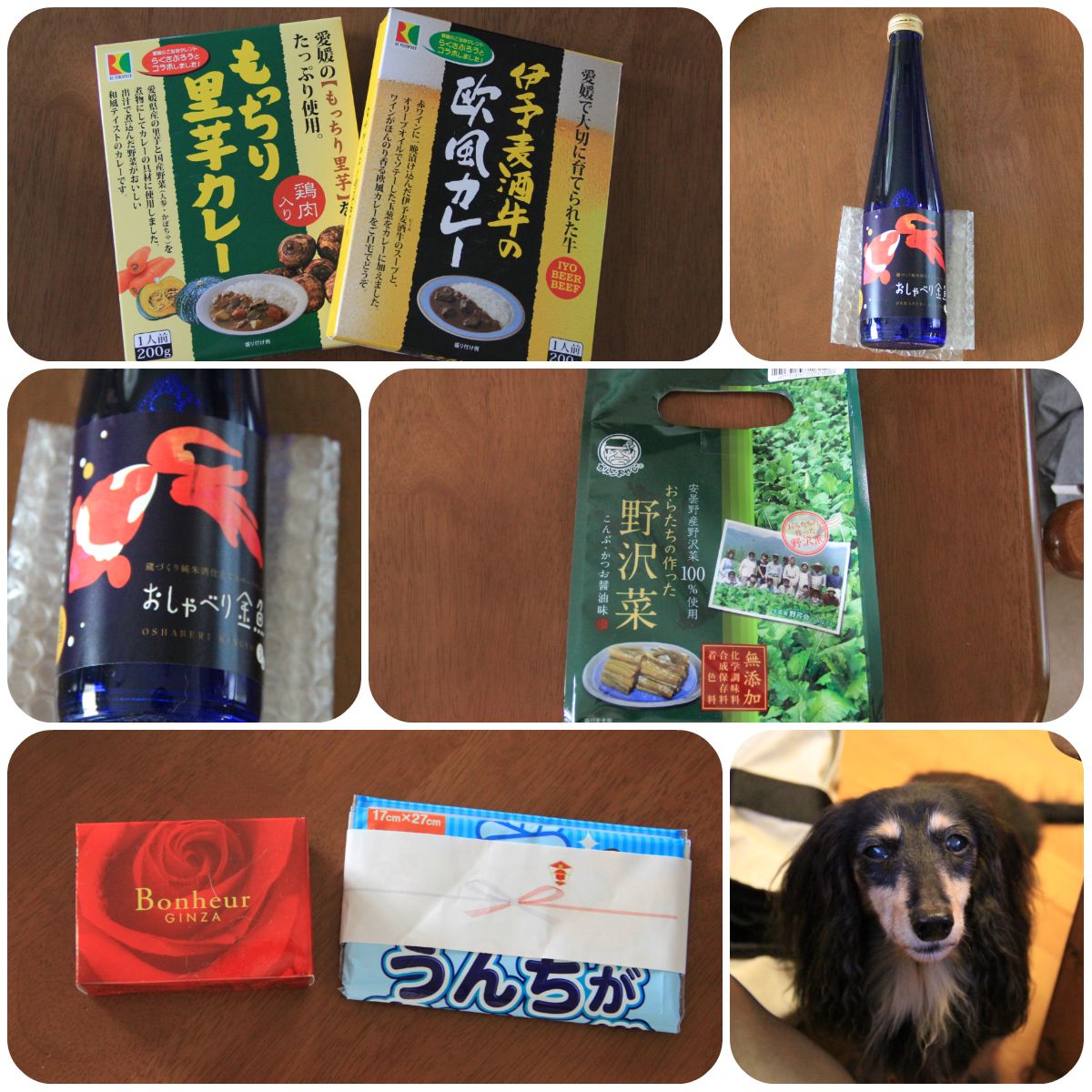 まる家からカレー&日本酒、berryちゃんちから野沢菜、ラッ☆ピー家から石鹸&うんP袋