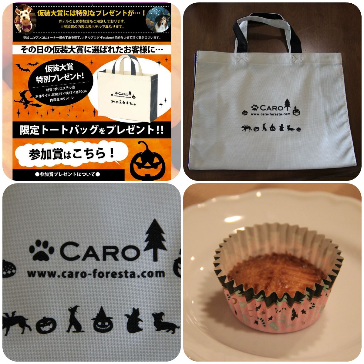 ハロウィンウィークの参加賞(ガレット)とその日の仮装大賞(トートバッグ)をいただいたよ。