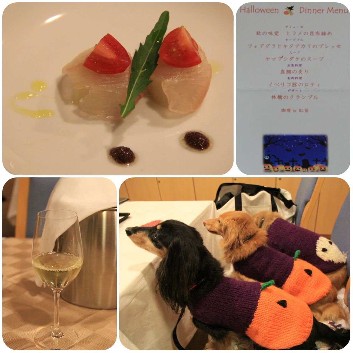 ハロウィンディナー、まずは白ワインで乾杯