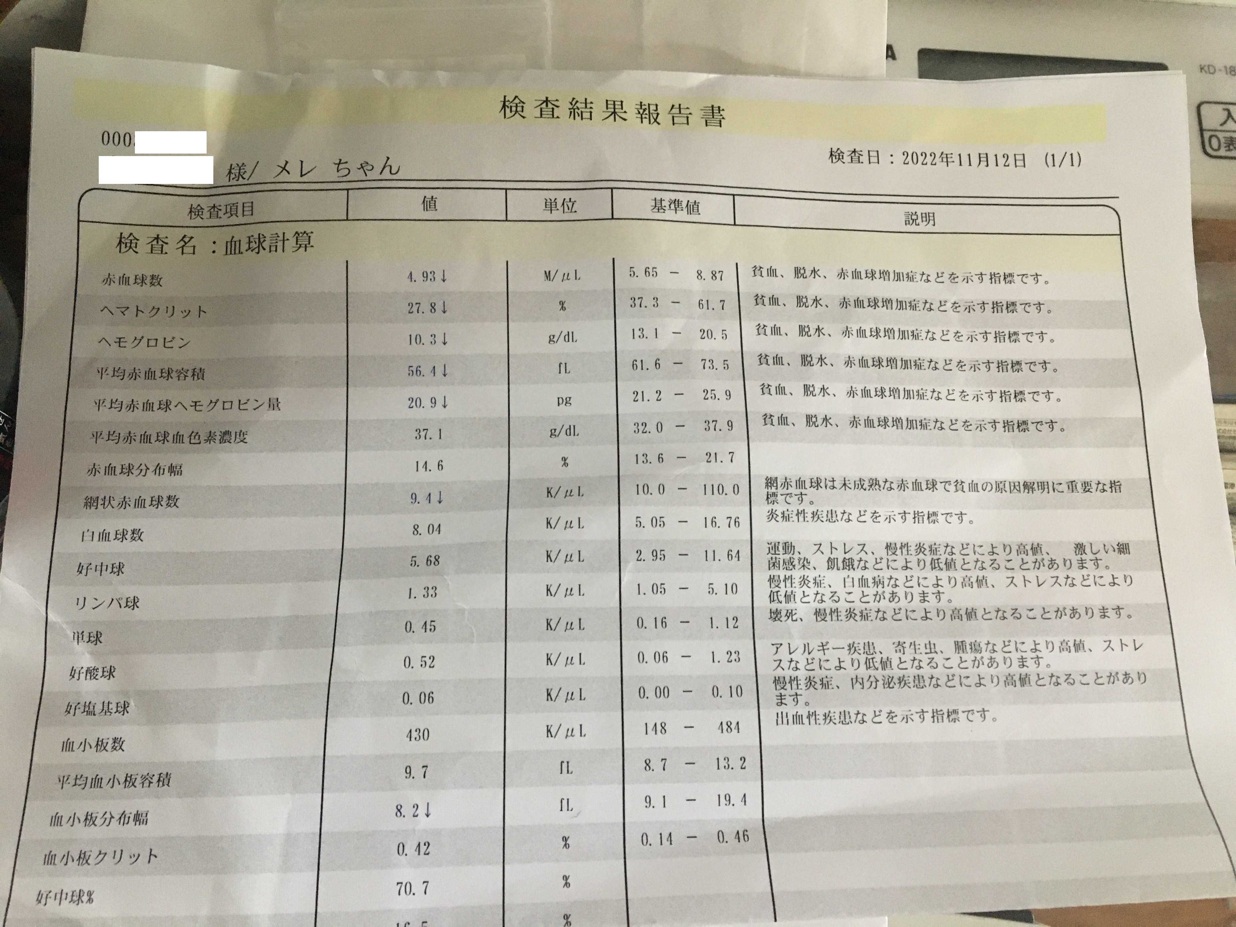 15歳メレ、腎臓の数値急上昇 ~尿毒症と食欲不振の改善~(健康診断パックの結果を聞きに病院へ)