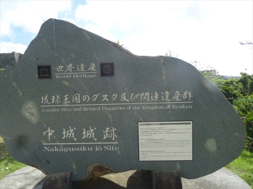 入り口にボランティアのオジサンがおり、案内してくれると。 平成12年12月、中城城跡を含む「琉球王国のグスク及び関連遺産群」が国内11番目の世界遺産として登録。前方に『三の郭』が。後に増築されたため「新城(ミーグスク)」とも呼ばれ、石積み技法の最も進んだ相方積み(亀甲乱積み)によって築かれていた。 中城城跡全景の模型。 物語を刻む世界遺産の中城城跡は、北中城村から中城村にわたる標高167メートルの高台に、東北から南西にほぼ一直線につらなる6つの城郭からなる城で、琉球王国時代に築城家として知られる護佐丸が、勝連半島で勢力を伸ばしていた阿麻和利に対する備えとして、読谷の座喜味城から移されて築いた城だといわれています。自然の地形を巧みに利用した美しい曲線の城壁に囲まれ、一の郭と二の郭は「布積」、三の郭と西北側の郭は「あいかた積」と呼ばれる手法で築かれており、その築城技術は高く評価されています。当時の琉球は、沖縄本島南部の佐敷から興った第一尚氏によって、国家が統一されていく過程にあり、その最終段階でこの城が果した役割は大きいものがあったと。護佐丸の滅亡後、この城がどのような使われ方をしたのかについては定かではないが、第二尚氏になると中城の領地が王の直轄領となっていたことからすると、中城城は王子の居城としてしばらく使われていた可能性も高いといわれていると。護佐丸が増築したとされるこの郭は、曲線の美しさと技法の高さが琉球のグスクの最高美と称賛されているのだ。 北東に向かって建てられた裏門。1853年に黒船でペリー提督一行が沖縄に立ち寄った際、中城城を測量し、「要塞の資材は石灰岩であり、その石造建築は、賞賛すべき構造のものであった」と『日本遠征記』に残しているのだと。 『あいかた積み』の北の郭・物見台。護佐丸が井戸を取り込み増築したとされる北の郭。井戸を取り込む事により、長期の籠城にも耐えられるようにしたとされるとのこと。二の郭へ向かう。 美しい曲線の石垣。 一の郭から南の郭へ抜ける拱門だが、本来あるはずの屋根の石積みが なく鉄骨で補強されていた。中城の碑。二の郭に建てられている石碑は、日露戦争の戦没者を祀った慰霊碑だと。 中城城跡で最も眺めの良い場所といわれる二の郭。 、 晴れた日は沖縄のほぼ半分の地域が見えると。海沿いに見える吉の浦火力発電所は沖縄電力の天然ガス火力発電所。沖縄電力初のLNG(液化天然ガス)火力であり、初のコンバインドサイクル発電方式を導入した発電所。一の郭への入り口門。 中城城跡の中で最も大きな敷地の一の郭、中城城の主郭で殿舎が建っていた場所。のちに間切番所が立てられ、廃藩置県後は中城村役場がここにあったそうだが、先の沖縄戦で焼失してしまったのだとか。門の石垣の中には、新たに交換されたと思われる白い石も。 「御當蔵火神(うとぅくらひぬかん)」の文字が。琉球国王が住む首里城を拝む場所。それに「火神(ひぬかん)」があるということは、ここでは火を扱っていたのであろう。沖縄では、火を扱う竃や台所には「火神(ひぬかん)」を祀る風習があって、今も受け継がれているのだと。現在の住宅でも、台所にに「火神(ひぬかん)」を祀っているお宅が多いと。 狭間か? 正門。南西に向けられて建てられた正門(やぐら門)。門を挟むように両側に石垣がせり出している。また、正門の近くには城壁の一部を取り除いた部分があるが、これは第二次世界大戦当時、日本軍が防空壕を作ろうと工事を始めたが、石垣の構造がとても堅固で作業が難航したため、諦めて撤退したとされている。 廃墟となった中城高原ホテル。一度も日の目を見なかった廃墟ホテル。山の稜線沿いに1階から4階建ての傾斜に合わせて建築しようとしていたホテル。昭和50年(1975)、今から32年前、沖縄海洋博に合わせてオープンさせようとしていたようだ。どう考えても壮大な違法建築?。 散策道の脇には多くのクワズイモは自生していた。マムシクサに似た赤い実が。ワズイモの名前の由来はシュウ酸カルシウムという毒があって食べられないから。もちろんこの実も食べると大変なことになる(はず)。