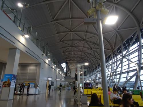 この日は関西国際空港内にある我が社の関係会社と打ち合わせの日。宿泊したホテルはスターゲイトホテル関西エアポート。その高さは圧倒的、54階、256m 。低層階はロビーや宴会場・会議場など諸施設、28階に屋外チャペル、29〜50階までが客室、52〜54階はレストラン・バー・宴会場となっている。ホテル以外の8〜27階は「りんくうゲートタワービル」としての各企業や団体が入居する賃貸オフィスとなっているとのこと。この日の早朝散歩は関西国際空港内の散策。早めにチェックアウトし、荷物を持ってりんくうタウン駅に向かう。 JR関西空港線と南海空港線が乗入れる「りんくうタウン駅」この日はJRにて関西空港に向かう。 先頭車両から連絡橋の姿を撮影。 大阪方面側の連絡橋。メンテ用の階段も見えた。 関西空港に到着し、Terminal 1に向かう。 Terminal 1入り口。関西空港は第1ターミナルビルと第2ターミナルビルに別れている。4階が国際線出発、2階が国内線の出発・到着、1階が国際線到着となっていて、利用者が垂直方向の移動だけで国内線と国際線を乗り継ぎできるサンドイッチ構造が採用されている。エスカレータで3階に上がる。コインロッカーに荷物を預け、散策開始。屋根は、飛行機の翼をイメージした緩やかな円弧状のカーブを描く独特の形となっており、効率的に空調による風を館内に回すようになっている。天井内側に張られたテントは、空調の風を受け止めて流す役目と、下のライトからの照明を照り返して間接照明をする役目を果たしているとのこと。 流線型の屋根の下で舞うフライングモビールは、翼を持った生き物の如し。テントに写った影も美しかった。 4階が国際線出発。多くの航空会社のチェックインカウンターが。以前利用した記憶によると、4階でチェックインの後、手荷物検査を受け、3階の税関・出国審査を経て出国エリア(トランジットエリア)へと進むのでは。 関西空港の見所はやはり柱のない屋根。最上階のタクシー乗り場から関西国際空港の管制塔を見る。高さ約80mあり、空港島のほぼ中央に設置されています。 支柱、屋根のトラス構造。 トラスの壁貫通部は不等沈下対策が。 支柱付け根部分も沈下対策? 再び3階のレストラン・ショップエリアに向かう。日本のお土産の数々。 豊かな海づくりのために空港島周辺護岸で育成している藻場や、リサイクルによる水・エネルギーの再利用などを、パネル展示で紹介。 関西国際空港内に計約11,600キロワットの発電出力を持つ大規模太陽光発電施設(メガソーラー)「KIXメガソーラー」事業のパネル。 滑走路脇の約1・2キロメートルにわたる遊休地や貨物倉庫の屋根などに、太陽光の反射が航空機の運航に影響を与えない特性を持つ太陽光パネル約7万3千枚を設置。年間電力量は一般住宅の約4100世帯分に相当する約1200万キロワット時の発電量とのこと。 空港の航空写真パネルも展示されていた。 連絡橋の繋がる側がA滑走路:3500m、下側がB滑走路:国内最長の4000m。当然現在就航中の航空機全ての離発着が可能。第2ターミナルはB滑走路側にある。ホテル日航関西空港。関西国際空港島内唯一のホテル。関西国際空港旅客ターミナル及び鉄道駅とコンコースで直結されている。 関西国際空港第一ターミナル2階からコンコースが渡されていて、コンコースの真ん中は徒歩で、両サイドには動く歩道が設置されていた。コンコースからの関空連絡橋方面。ホテル日航関西空港の中で同僚の迎えを待つ。そして同僚の車に乗り、セキュリティーゲートで手続きを完了し空港内部の関係会社へ。