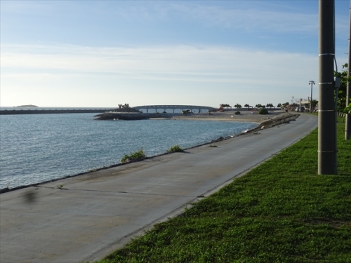 沖縄・世界遺産、日本百名城制覇の旅 2日目は沖縄中部地区の観光。朝食を早めに済ませ、7時前にホテルを出発し58号線を北に。最初に訪れたのは美浜アメリカンビレッジ。美浜アメリカンビレッジは、那覇市内から車で約40分。沖縄本島の中部にある北谷(ちゃたん)町に、平成10年(1998)から順次、商業施設がオープンしてきた一大リゾート。 シネマコンプレックス、ボウリング場、カラオケボックス、ゲームセンターなどが建ち並び、飲食店や雑貨屋などが集まる若者向けのエリア。地元の若い子達の集まる所、そして嘉手納の直近なので、米軍関係の方々も家族連れで沢山来るので、ちょっと、不思議な空間とのことであるが未だ早朝に付き人影が少なし。 その名のとおりアメリカンな感じで、沖縄に来たなって雰囲気を人こそ殆ど見なかったが、建物はその名のとおりアメリカンな感じで、沖縄に来たなって雰囲気を感じることが出来たのであった。観覧車は夜は華やかにライトアップされており、北谷町の名物。 『デポアイランド』は、ファッション・雑貨・飲食店・ギャラリーなど約60店舗が入居している、美浜の新しい顔となる商業施設。 アメリカの国旗の外装の店屋。 ほかにもカラフルな建物があり、さまざまな店が集まっていました。開店していれば、ひとつの区画だけでもゆっくり見ているだけで相当な時間を楽しめそう。そして車は残波岬灯台(ざんぱみさきとうだい)へ。残波岬灯台は、沖縄本島の中ほどにある読谷村の残波岬突端に立つ、白亜の大型灯台。泰期の像。泰期は14世紀後半、沖縄が琉球王朝時代の頃、中山王の命を受けて初の進貢使として中国に渡り、大交易時代の幕をあけた人物。泰期像は約180cmで中国福建省の方向を指さしているのだと。 断崖絶壁と白い灯台が目印の岬。高さ30m以上のさんご礁の絶壁が続き 砕け散る波しぶきの迫力そして、遠くまで広がる青い海が美しい景勝地。 沖縄本島で一番高い灯台。塔高31メートル、灯高44メートル。この灯台は参観灯台なのだがこの時間は未だ閉鎖中であった。30mもの断崖絶壁が約2kmも続く、雄大な景観が広がっていた。 次の訪問地は真栄田岬(まえだみさき)。 沖縄本島北部の恩納村にある真栄田岬はダイビングとシュノーケルのスポット。整備された階段を下りる。 目の前にはエメラルドの波静かな海が広がっていた。シュノーケリングとダイビングで賑わっていた。人気の青の洞窟ツアーのスポットになっていると。 ダイビングとシュノーケルの生徒が懸命に学んでいました。ここで我が長女夫婦もダイビングを学んだのだと。 展望台からは真栄田岬周辺のきれいな海を楽しめたのでした。 多くの船がダイビング観光客を乗せて。 透明度の高い海が一面に広がっていたのです。 車は更に進み、エメラルドの海沿いを走る。 ドラゴンボートを楽しむ観光客。ゴム製のチューブに座って、ボートで引っ張られて振り落とされないように懸命な姿が。 白波でサーフィンを楽しむ青年の姿も。 瀬底大橋を渡り瀬底島へ。 瀬底島は沖縄美ら海水族館で有名な沖縄県本部町にあり、周囲約8キロメートル小さな島。橋を渡りきり、暫く進むとユニークな人形が歓迎してくれた。 1985年(昭和60年)2月に瀬底大橋が開通。全長762mは当時沖縄県内では最長の橋だったと。 瀬底大橋開通前は対岸の本部港から1日10往復の定期船が就航していたとのこと(所要時間はたった6分)。 本部港~伊江島を結ぶ連絡線か?