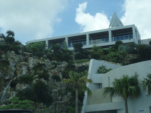 海洋博公園内にある沖縄美ら海水族館(おきなわちゅらうみすいぞくかん)を訪ねる。沖縄本土復帰記念事業として1975年(昭和50年)に本部町で開催された沖縄国際海洋博覧会において、海洋生物園が出展されたのが始まり。 イルカの像の下からはミスト状の水が出て観光客を歓迎。入り口近くのオブジェ「花やどかり」がウィンクして迎えてくれました。花マンタ? 水族館に向かう。 この水族館の「うり」はこの銅像の通りジンベイザメ。 花カメ。 水族館の下に広がる海もエメラルド色。 遠く伊江島の姿も。高くそびえる城山(ぐすくやま)は。伊江島の中央にそびえる島のシンボル。標高は172.2メートル。 沖縄戦の初期、昭和20年4月16日から21日まで、「六日戦争」と呼ばれる日米の激しい戦闘がこの伊江島で繰り広げられたのだ。日本軍約2000人、村民約1500人がこの6日間で戦死したと。美ら海水族館の建物を海側から眺めて。 ウミガメ館の水槽の中では係員がウミガメの世話を。 水族館は4階建てになっていて、入り口は3階。3階までエスカレーターであがっていき、そこから順番に見ながら下に降りていく仕組み 。この日は水族館には入らなかった。そして車で5分ほどの備瀬地区のフクギ並木を訪ねる。 防風林として家を取り囲むように植えられたフクギが連なり、備瀬崎までのおよそ1kmの並木道になっていた。 フクギの葉は対生で、長楕円形または卵状楕円形で長さ8-14cm。 観光客を乗せ牛に引かせフクギ並木を案内する老人の姿も。 差し込む日差しとフクギの葉擦れ、落ち着いた静けさは、かつての沖縄の集落の様子と、ゆったりとした時間の流れを感じさせてくれたのでした。