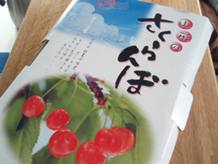 嫁いだ娘夫婦が、先日我が家にサクランボを送ってくれました。妻の誕生祝と父の日を兼ねているとの事。 箱を開けると、ピンクのスポンジで覆われていました。そしてその下には、 鮮やかなルビー色に輝くその果実が。果樹園の宝石ともいわれるさくらんぼ「佐藤錦」。まさにキラキラ輝く赤い宝石。 まん丸で、果肉は乳白色。甘みが多く、果皮が厚くて、ぷりぷりとした張りがあったのです。生産者の方のメッセージも添えられていました。 濃密な甘さが醸しだす、ほとばしるような果汁の美味しさを「やめられないとまらない」 で楽しんだのでした。