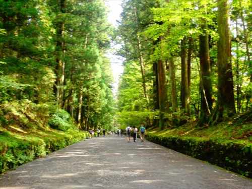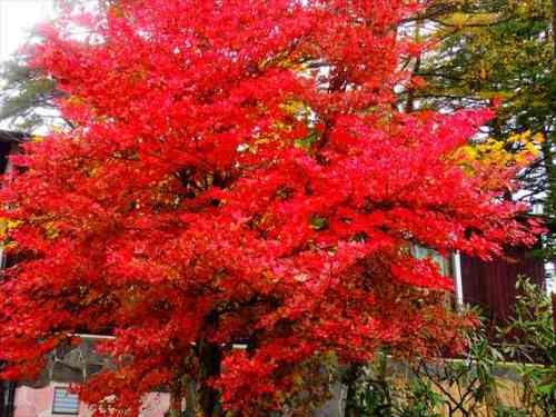 輪王寺大猷院への参道を利用しホテルに向かう。 途中左手の杉林の間から東照宮・五重塔が姿を現した。 ホテル近くの駐車場の横に紅葉を背景に甲良豊後守宗広銅像(こうらぶんごのかみむねひろこうどうぞう)が。天才といわれた名大工で、世界文化遺産()に登録された日光東照宮の建物()をつくりかえた人 。宿泊ホテルのレストランで昼食を。ここは穴場で混んでいなかったのであった。ガイドの妻の鋭い読みに敬服!!天ざる御膳を楽しむ。 そして最後の観光場所の日光東照宮美術館に向かう。 400年式年大祭奉祝「日本大宝樹展」が開催され、客殿や境内のいたる場所に盆栽が展示されていた。 この美術館は旧社務所の杉戸、襖などの障壁画のほか、掛け軸など日本画100点を公開中。 見事な庭園そしてその中に盆栽が展示されていた。 日本画壇の巨匠「横山大観」が手がけた「朝陽之図」の一部。(絵葉書より)「荒井寛方」の「老松」の一部(絵葉書より)。日光東照宮社務所横の建物が「日本大宝樹展」のメイン会場の模様。 多くの盆栽が展示されていた。製作者の名前等は一切なし。 建物内にも多くの作品が、そして多くの外人が写真を撮っていた。 照明の陰も美しかった。再び東照宮五重塔近くの境内へ。府中囃子保存会の祭囃子の賑やかな披露が行われていた。 獅子舞も。 日光東照宮 御仮殿(おかりでん)。御仮殿は本社を修理するときに、一時的に神霊をお移しする建物の事。通常、 御仮殿はその役目が終わったら、取り壊されますが、日光東照宮では本社の修理が頻繁なため御仮殿は常設な建物になっているのだと。預けていた荷物を取りにホテルに向かったが、ホテル前には駐車所に入る車が大渋滞中。日光駅への帰路の渋滞が心配されたが・・・・・。幸いホテルのワゴン車が日光駅まで行くとのことで全員を乗せてくださいました。川沿いの裏道を利用し、大渋滞にも巻き込まれずあっという間に東武日光駅に到着。流石に地元の渋滞情報に長けたホテルの方であると感心しそして全員で感謝。そして電車の時間までShopping time。日光ゆばをお土産に買う岡山のお母さん。 そして我が家の「お母さん」も同様に店の「お母さん」から。 女性陣は美味しい人気のパンも購入。 そしてJR日光駅で予定の電車を待つ間に妻に教えてもらい駅前の杉並木を見学。下り方面。 そして上り方面。 周辺の開発によって旧態を失った箇所もあるものの、植樹から400年近く経った現在でも約12,500本のスギが生い茂り、寄進碑や一里塚も現存するなど、江戸時代の街道の景観をよく伝えているのだと。モミジの実を見つける。竹とんぼのような羽の付いたのもみじの種は、風に乗り、遠くへ飛んで行けるようにうまく出来ているのです。JR日光駅→宇都宮駅→東京駅と電車を乗り継ぎ帰路へ。そして岡山のご家族は更に東京駅から東海道新幹線で岡山駅へ。 3家族による1泊2日の秋の日光紅葉見物の旅も天候にも比較的恵まれ、楽しい和気藹々の旅であった。旅行ガイドを担当した妻の旅程も、思いの外ハードであり忙しかったが私にとってはwelcomeなのであった。岡山のご両親とも久しぶりの再会で、楽しい会話が弾んだのであった。それにしても、中禅寺湖周辺の紅葉は美しかったのであった。毎年訪れている香嵐渓の赤のモミジ一色の紅葉も感動ものであるが緑、黄色の混在した錦秋もそれにも増して美しい光景であったのだ。葉の緑は、植物が光合成をするための衣。秋になって落ち葉になる時必要がなくなったこの緑の衣を脱ぎ捨てて、その木の葉の「本来」の色である赤や黄色などの美しい色を出すのである。それがモミジ葉の紅葉の真実。しかもモミジ葉は、葉にできた糖分が多いほど 真っ赤に染まるのです。私も今後は「濡れた落ち葉」にならずに、本来の姿?を模索し、更に豊かな心を蓄えながら、より美しい色を醸し出して生きて行ければ・・・ と考える旅でもあったのだ。『もみじ葉に 我が身映して 秋の夜ぞ 物想うこと 多くありけり』----詠み人知らず 次回は何時?何処に?妻の計画に期待しているのである。 ----------秋の日光旅行 完------------