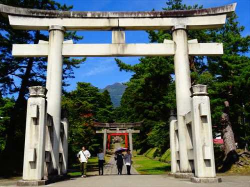 岩木山神社は、青森県弘前市百沢の岩木山の南東麓にある神社。別称、「お岩木さま」「お山」「奥日光」と呼ばれ、古くから津軽国内の人々に愛されて来た。創建1200余年の歴史を持ち、現存する社殿や楼門は、江戸時代初期から元禄時代にかけて代々の津軽藩主が造営・寄進したもので、「奥の日光」と称され、本殿・拝殿・奥門・楼門等が重要文化財に指定されているのだ。 朱の鳥居の上に岩木山頂上が見えた。 杉木立の参道を200m程進むと、正面に朱色の楼門が。神札授与所が参道左側に。 朱塗りの壮麗なる楼門の手前に、手水舎へ抜ける脇道朱塗りの壮麗なる楼門の手前に、手水舎へ抜ける脇道が。長い柄杓を持って水をくみ手や口を清めたのであった。勢いよく吹き出る水は岩木山の湧き水で冷たく、登山者もよく飲料水として利用されていると。巨大な楼門は桁行16.6m、梁間7.98m、棟高17.85m、丹塗り一色の二層の壮大な楼門。そして入母屋造、とち葺形銅板葺。 楼門の下の両脇には 両脇に随神像が安置されていた。仁王像は、仏教での仏を守るための一対の神像で、左右大臣とも呼ばれる随神像は神道で言う神様に従って警護する神像。右側は櫛磐間戸命 (くしいわまどのみこと)。 向かって左側は豊磐間戸命(とよいわまどのみこと)。仁王像と同じく阿像。岩木山神社で有名な狛犬がこちらの『玉垣狛犬』。朱色の楼門を上がってすぐの玉垣の柱の裏側に、こっそりと左右それぞれにしがみついていた。この狛犬は岩木山神社にある狛犬の中で最も古く、貞享3年(1687)から元禄7年(1694)の大造営の際に造られたと。下を向いているこの狛犬といっしょに写真を撮ると恋愛運が向上すると。上を向いているこの狛犬と写真を撮ると金運が良くなるといわれていると。こちらが好きな私。楼門をくぐったところにも一対の狛犬がいた。こちらは台座に銘があり、明治21年(1888年)に作られたことが分かる。なかなかユニークな顔をしていて笑っているようにしか見えない阿形。、 そして拝殿。壮大な五間堂で、外部を全面丹()塗り、内側に弁柄()塗りとするが、千鳥破風内の彫刻や蟇()股(かえるまた)()()は極彩色で美しいのであった。内部の構成も明快で、密教寺院本堂としての雰囲気を今に伝えていた。 主祭神 岩木山大神は坂上刈田麿 (さかのうえのかりたまろ) 坂上田村麻呂の父顕国魂神 (うつしくにたまのかみ)多都比姫神 (たつひひめのかみ)大山祇神 (おおやまづみのかみ)宇賀能賣神 (うがのめのかみ)以上の5柱の総称して 岩木山大神(いわきやまおおかみ)と呼ぶのだと。開運招福の神さまとして昔から崇められていると。楼門を拝殿側から。 色彩が見事。 巨大な絵馬も。 参道奥の社務所は落ちついた建物。 御朱印をいただく。アルバイトの巫女さんなのか、筆字に修行が必要。そして帰路には真っ赤なリンゴが・・・。よくよく見ると赤い袋なのであった。 そしてこちらは本物の赤いリンゴ。