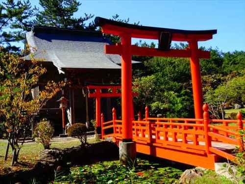 拝殿入り口前の階段を下ると龍神宮へ出た。ここには神さまが住むと信仰される神池があり、龍神宮がその奥に。この神池では神占いが行われると。願をこめて「こより」を池に落とし、こよりが真直ぐ沈めば願望成就、途中で止まり、時間がかかると願い事は難儀をする。全く沈まないと願いは無理との信仰。今も行われているのであろうか?太鼓橋、色は緑と異なり朱であるがモネの絵画を想い出す。 そして睡蓮の花も。神橋(太鼓橋)手前から龍神宮を。 朱色と緑そして青空ののコントラストが美しかった。そしてここから千本鳥居が始まる。千本鳥居を潜り進む。見上げると遠くの小高い丘まで無数の鳥居が延々と続いており、正に壮観な眺め。鳥居の途中には橋も架けられていて、千本鳥居途中の庭園で一休みすることもできた。 この鳥居、ちょっとばかり背が低い。ほぼ1~2m間隔で建てられているこの鳥居の数は200数本だとか。詳しい数字は202本?御朱印を頂いた宮司さんから聞きましたが、あっという間にその数を忘れてしまいました。 最後の鳥居の先に小さな神社があった。神明社。御祭神は天照皇大神。丘の上にこの「神明社」があり、その下の川に沿って小神祠公園が広がっていた。 高山稲荷神社には、多くの小神祠や「おきつね様」が奉納されていて、それらをまとめて神苑を造り、祀っているわけですが、中には老朽化したものやお参りが絶えてしまったもの、所在が分からなくなってしまったものも多くあり、それらをまとめて安置している場所がこの「小神祠公園」。毎年8月には、信仰者の安泰を願ってお焚き上げの神事が行われるとのこと。北海道、青森、秋田あたりのお役ご免になったお稲荷様が集められたと。不思議なやや不気味な光景と感じたのであった。神明社の奥には狭く細い沼が。 終点から下を見ると、まるで「龍」が寝そべっているようにも見えた(ドミノのようにも)。青森県のパワースポットにも選ばれている摩訶不思議な光景。京都の伏見稲荷大社に比べると流石に見劣りするが、日本海に面した最果ての北の地にこのような千本鳥居があること自体に驚かさせられた。この鳥居のことを、『鳥居』というのは、神社に願掛けをした時の願を『取り入れる』という意味の鳥居で、数が多いほど願いが叶うといわれていると。見事な朱の帯がくねくねと。再び鳥居のトンネルを潜りながら戻る。 再び龍神宮へ戻る。 龍神宮正面。 ここにも見事な龍の透かし彫りが。手前からきつね・きつね・狛犬が豆絞りの手拭いを被って。三体が並んで立っているのは珍しい光景では。手拭いを頬被りしているのは北国の冬の寒さを凌ぐためか? 再びピンクの睡蓮が。 見事な日本庭園も。 社務所に戻り御朱印を。入り口の扉の黄金の飾り金物。社務所の中に入ると正面にこの高山稲荷神社の拝殿を描いた大きな水墨画が飾られていた。そして御朱印をいただく。社務所右横の鳥居。しかしこれが参道への正面の鳥居。約200基の朱に輝く鳥居が珍百景として扱われ、また、その奥には廃稲荷や廃祠が無数に並んでおり、その光景はやや異様にも感じられたが、この東北の山の奥にこのような立派な歴史ある神社の存在に感動したのであった。