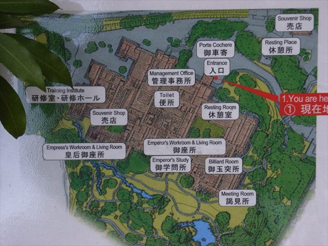 天気が良くなり、時間にも余裕があり、多くの晴れ間が見えて来たので再び華厳の滝に向かう。 やはり日が射し明るくなり紅葉も映え、迫力が増した感じがしたのであった。 太陽の光の強さに伴い、時々刻々移り変わる周囲の景色と共に力強く流れ落ちる滝を楽しむことが出来たのであった。すいとんを購入し楽しむ。大根中心の具がいっぱいで美味。 日光は生ゆばが名物で多くの店で販売されていた。 中禅寺湖温泉駅から再びバスに乗り第1いろは坂を下る。車窓から紅葉を楽しむ。発車して暫くは紅葉の真っ盛り。 幸い渋滞はなし。 カメラ片手に紅葉を楽しむ。 晴れていれば更に美しいのであったが。 田母沢御用邸に立ち寄るため「田母沢」でバスを降りる。日光田母沢御用邸記念公園 は1899年(明治32年)に作られてから1925年(大正14年)夏まで大正天皇が毎年のようにご静養に訪れた建物。現在の天皇陛下も第2次世界大戦のときに日光に疎開した時に滞在されたと。建物の中にはいると当時の皇室の生活を垣間見ることができる貴重な歴史的建物。日光田母沢御用邸入口 御車寄。 この唐破風形式の格調高い御車寄は、皇太子嘉仁親王の花御殿(東宮御所)の玄関として、明治22年に増築されたもの。露出を変えて撮影してみました。建物は明治時代の銀行家、小林年保(こばやしねんぽ)の別荘と当時赤坂離宮で使われていた紀州江戸屋敷の一部を移転し、さらに新しく建物をつけたしてつくったと。 雨で庭の苔が際立って美しかった。見事な襖絵。 この田母沢御用邸には紀州徳川家の江戸中屋敷から移された襖絵や杉戸絵が多くある。これらの障壁画は紀州藩お抱えの絵師ばかりでなく、狩野家や住吉家などの幕府御用絵師など多くの絵師が参画して描かれたと。画題も松竹梅などを扱った吉祥図や物語絵、四季の花鳥図などが描かれていた。 御玉突所。明治時代の初期から、皇室では諸外国の賓客との交流のためにビリヤードが嗜まれていたという。中庭のこの地下への入り口は使用人の通路とのことであるが防空壕にも続いているのではと、この後に理解できたのであった。御謁見所。ここは天皇が公式の来客と面会した謁見所。大正時代の大規模増築部分にあった。玉座があるが、陛下はお立ちになって引見された、と係の方から説明を受ける。左の卓子は御帽子を置かれた台とのこと。床の間と天井は真の書院造りでありながら、畳敷きの上に英国製の絨毯を敷き、和洋折衷様式となっていた。建物の中の廊下から眺めた庭園の紅葉はこれから。 紅葉が進めばさぞ美しいのであろう。丸窓のある御学問所は、梅の間と呼ばれていると。部屋一面の壁に梅の木が描かれているところからからなのであろうか。御次の間。天皇陛下の御寝室。 照明器具がなく燭台を用いたと。御学問所の襖絵。 御学問所の丸窓から見た庭園。田母沢御用邸の最大の見どころともいわれる円窓は、御学問所にある。灯籠と春には樹齢400年の枝垂れ桜が見える構図は、考え尽くされた構図。枝垂れ桜の巨木に驚く。2階からの庭の絶景。 いくつもの建物が折り重なるようにして一つにつながっている御用邸の姿がよく見えた。まるで鳥の羽のように、銅葺き屋根が幾層にも重なりあっていた。再び1階からの庭園。 この襖絵は源氏物語の一場面か?。 狩野洞益 葦に雁。引き戸に使われている歪みのあるガラスは建築当時のもの。紅葉が進んだモミジの赤の拡がりを歪んだガラス越しに見たかったのであった。障子の一部に竹ひご使って波模様。波の形がそれぞれ微妙に異なる繊細な美。黄金の襖の金具が輝いていた。もちろんこれは皇室の菊花紋(十六八重表菊)。これも菊花紋のオンパレード。照明のスイッチも歴史を感じさせてくれた。電気の分電盤。食器棚の如く、ガラス越しにそれぞれのブレーカが見えた。それにしても現行型とは比べ物にならない位、巨大で歴史を感じられたのであった。。