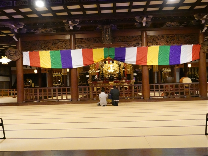 「本堂内」を見る。「清浄光寺」の勅額は後光厳天皇宸筆。外陣と内陣に分かれ、内陣は僧座・尼座・鏡縁に分かれる時宗独特の様式。欄間の彫刻類が美しい。本堂須弥壇に鎮座する阿弥陀如来坐像、平安時代後期作と伝える。穏やかな表情で。「いろは坂」を登りつめた処が山門跡で、明治13年に焼けるまで銅屋根の仁王門あり、「藤沢山(とうたくさん)」と書かれた東山天皇の勅額(ちょくがく=天皇などが寺院に特に与える直筆の書で記された額)があったと。そして現在は本堂内にあるとのことからこれがそうなのであろう。本堂前から「大イチョウ」を振り返る。空には「上弦の月」。ズームして。「本堂 内陣」の左側。再び阿弥陀如来坐像を斜めから。ズームして。正面から再び。「寄心能登観同月 能登に心を寄せ同じ月を観る」「再興能登」 遊行七十五代 他阿一浄上人 書「本堂 内陣」の右側。「遊行藤澤山御歴代上人」の位牌が並ぶ。右から「南無寶勝如來 :宝勝如来に感謝します。 宝勝如来・・・宝の誘惑に惑わされず勝った如来(仏さま) 南無妙色身如來 :妙色身如来に感謝します。 妙色身如来・・・美しい身体の如来(仏さま) 南無甘露王如來 :甘露王如来に感謝します。 甘露王如来・・・天から甘露のように教えを降り注ぐ如来(仏さま) 南無廣博身如來 :広博身如来に感謝します。 広博身如来・・・のど元を広く開けて飲食させる如来(仏さま) 南無離怖畏如來 :離恐畏如来に感謝します。 離怖畏如来・・・怖れや不安から離れさせる如来(仏さま) と。いつまでも座っていたい空間なのであった。本堂内の見事な透かし彫り彫刻を追う。木鼻。照明。天井。そして「本堂内陣」を出て、「大イチョウ」を。「大イチョウ」の上に「金星」。「光のアート展示光のインスタレション作品を展示しています。「遊行の光」に彩を添えるアート作品をぜひご鑑賞くたさい。」再び「大イチョウ」を追って境内を戻る。「竹の灯り」。大イチョウの枝の間から「上弦の月」。ズームして。そして「鐘楼」を見る。ズームして。この鐘楼は南北朝時代、正平11年、北朝の延文(えんぶん)元年(1356)に造られています。当時の遊行寺の住持は遊行八代他阿渡船(とせん)上人です。この上人は遊行上人として初めて佐渡に渡って念仏勧進された方で、記録によると、佐渡を巡り終わって越後柏崎に上陸、国内を遊行中、その年の12月22日に藤沢遊行寺に独住されていた遊行六代一鎮上人が入寂されています。本堂とのコラボ。廻り込んで。 ・・・もどる・・・ ・・・つづく・・・