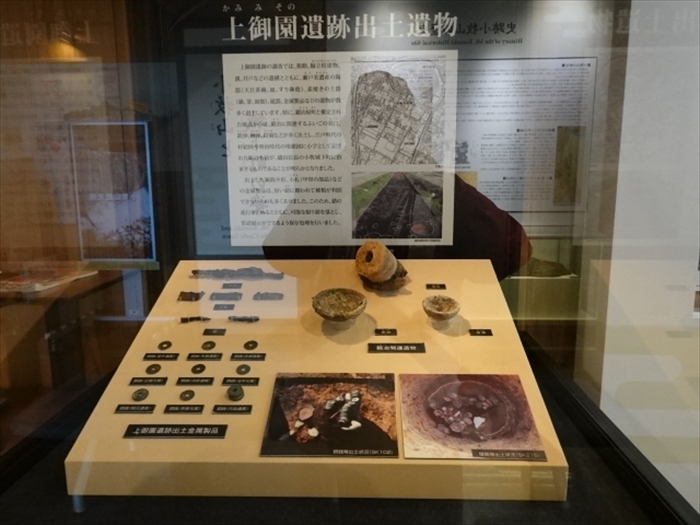 「上御園遺跡出土遺物」。「上御園遺跡の調査では、街路、掘立柱建物、溝、井戸などの遺構とともに、瀬戸美濃産の陶器(天目茶碗、皿、すり鉢他).素焼きの土器(鍋、釜、皿他)、磁器、金属製品などの遺物が数多く出土しています。特に.鍛冶屋町と推定された地点からは、鍛冶に関連するふいごの羽口、銭滓、銅滓、坩堝などが多く出土し、江戸時代の村絵図や明治時代の地籍図に小字として記された町の名前が.織田信長の小城下町に由来するものであることが明らかとなりました。出上した銅線や釘、小札(甲冑の部品)などの金属製品は、厚い錆に覆われて種類が判別できないものも多くありました。このため、錆の進行を止めるとともに、可能な限り錆を落とし、常設展示ができるよう保存処理を行いました。」「上御園遺跡出土金属製品」。写真撮影用コーナー。家紋が描かれた屏風も。左から五三桐紋:織田信長、織田木瓜紋:織田信長、三つ葉葵紋:徳川家康・五三桐紋は足利義昭を報じて上洛した際に義昭より賜った。名誉紋。・織田木瓜紋は信長の父、織田信秀が主君の尾張守護の斯波氏から賜ったとされる。 (朝倉氏という説もあり)通常の「五瓜に唐花」に比べると花弁が細い。・三つ葉葵紋・徳川葵紋は、3枚の葵の葉を頭合わせに並べて、通常の太さの丸で囲う。 江戸幕府の将軍家、徳川家の家紋。日光市日光東照宮の神紋、東京増上寺の寺紋、 京都市清凉寺の寺紋。撮影用陣羽織。私も陣羽織を着用して。ズームして。2階:戦国時代の尾張国以下、ネットから。戦国時代の尾張国。賤ヶ岳の戦い。小牧・長久手の合戦への道。小牧山城周辺の戦い。小牧・長久手の合戦以後の主な出来事。小牧・長久手の合戦講話後の秀吉と家康。織田信雄の挙兵。信長の家臣団。織田弾正忠家。2階の戦国時代の尾張国についての展示。信長の小牧山城築城や、息子の信雄(のぶかつ)・家康連合軍がなぜ小牧山を本陣としたのかといった想いや背景などが、パネルや映像(ミニシアター)で紹介されていた。3階:戦国クイズコーナー。3階は「戦国クイズコーナー」と題して信長・信雄(のぶかつ)・家康のそれぞれに関する人生をクイズ形式で、すごろくのように進んで遊べるコーナー。歴史のことが詳しくなくても「へ~そうだったんだ!」と楽しみながら学べるコーナーである と。戦国時代の戦道具。「火縄銃」。槍、馬印。そして4階・最上階へ。4階 展望室に到着床面の航空写真に、主に小牧・長久手の合戦で築かれた砦の位置を示すことで、信雄・家康軍と秀吉軍の距離感や戦略を体験できるのであった。歴史館の最上階は濃尾平野が一望できる展望室。今回リニューアルしたひとつが、この床の航空写真。主に小牧・長久手の合戦で築かれた砦の位置を示すことで、秀吉軍と信雄・家康軍の距離感や戦略を体感できるよう工夫がされているのであった。最上階からの眺望、犬山方面。遠くに、右側から伊吹山地、左側から養老山地で迫る、関ヶ原方面になるようだ。ズームして。右側にカメラをふって。犬山城が見えると!?これが犬山城であっただろうか。名古屋の市街地方面。名古屋飛行場(県営名古屋空港)が中央に見えた。名古屋飛行場は航空法上の正式名称であり、空港施設の通称は県営名古屋空港。航空自衛隊小牧基地と隣接しているため小牧空港とも呼ばれる。大手道、発掘現場を見下ろして。再び犬山市方向。気象条件が良ければ、槍ヶ岳、乗鞍岳、御嶽山、木曽駒ケ岳が見えるようであったが。ズームして。「史跡小牧山主郭地区整備工事史跡小牧山では、織田信長が小牧山築城時に築いた石垣などを、発掘調査成果に基づいて復元する史跡整備工事を実施しています。小牧山歴史館周辺を5つの工区に分け、順次実施設計と整備工事を行い、令和7年度の整備完成を目指しています。令和3年度未には、第5工区(山頂北側工リア)が、令和4年度未には第1工区(山頂西側工リア)の整備工事が完了し、令和5年4月1日(土)より一般公聞しています。」その下に上空から見た第1工区(令和5年4月10日撮影)。小牧山歴史館の南側上空からの撮影。史跡小牧山主郭地区整備工事各工区の位置。整備(第5工区)の概要。整備(第1工区)の概要。石垣復元の整備工事。復元した石垣は、下図エリアでご覧いただけます。(☆5工区・1工区)。再び名古屋市街地をズームして。右側に中村区の高層ビル群。愛知県犬山市南部に位置する標高275mの山・尾張富士方向をズームして。尾張富士の右側に本宮山・293m。中央アルプスの姿はやはり見えなかった?。案内写真。 ・・・もどる・・・ ・・・つづく・・・
