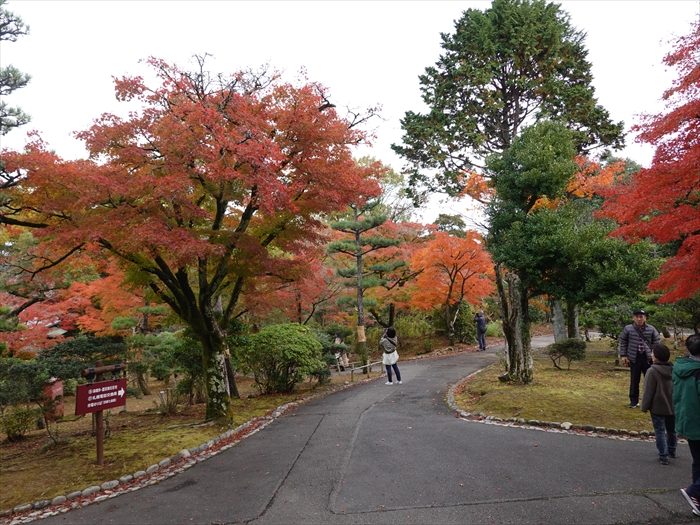 「国道155号」、「県道195号線」を利用して次の目的地の「明治村」に向かう。途中、「ローソン 犬山入鹿池店」で弁当を購入し、車内で腹ごしらえ。そして「明治村」の「大駐車場」に到着し、「明治村」の入口に向かって歩く。駐車場内の木々も見事に紅葉していた。「明治村」入口への道沿いの紅葉を楽しみながら進む。そして前方にチケット売り場が現れた。その先に煉瓦造りの大きな明治村の正門が。入村券うりば開村:9時30分閉村:16時00分入場券は大人2500円、高校生 1500円、小中学生 700円とやや高価。ご案内村営バス 運行中 1日乗降自由 小学生以上 500円京都市殿 運行中 1乗車料金 大人 500円、小学生 300円蒸気機関車 運行中 片道料金 大人 700円、小学生 500円4本の門柱からなる「明治村の正門」。赤煉瓦と白御影石を積み、扉や柵に鉄材を軽やかに使ったデザイン。「第八高等学校正門構造 煉瓦造この門は高等学校令により名古屋に開校した第八高等学校正門であり、明治期の代表的な洋式門である。赤煉瓦と白御影石を積み、扉や柵に鉄材を軽やかに使ったデザインは、明治期に導人されたネオ・ルネッサンス様式である。明治四十ニ年(一九〇九)に建造されて以来、わが国の学校制度改革と運命を共にした由緒ある教育の門である。昭和ニ十四年の学制改革により新制名古屋大学教養部の正門となり、ついで昭和四十年に校舎が名古屋市立大学に移管され、正門もまた名古屋市の所有に帰した。その後取り壊される運命になり、昭和四十五年三月から明治村正門となった。 旧所在地 名古屋市瑞穂区 建設年 明治四ニ(一九〇九) 解体年 昭和四三年(一九六八) 移築年 昭和四五年(一九七〇 ) 寄贈者 名古屋市」「博物館 明治村」。入村すると右手に「ミュージアムショップ」が。「明治村の沿革戦後の日本は荒廃から立ち直る過程において過去の多くの貴重な建築を無思慮に破壊する事態を迎えた。それは「過去とは背に廻った未来である」ということを忘れた悲しむべき現実であった。その現実に対して、先人達が努力と名識によって営々と築きあげてきた明治建築を、破壊から少しでも救済し、保存してその文化を自ら語らせるために開かれたのが明治村である。明治村は建築家谷口吉郎と実業家土川元夫によって発議された。二人は学生時代の僚友であり、企業活動としてではなく、日本の現状を憂うる同志として文化財保護のために青春の友情を温め立ち上がったのである。土川元夫が社長であった名古屋鉄道は、現在の明治村の地、大和時代安閑天皇紀の入鹿屯倉(いるかみやけ)の古代史の謎を秘めた自然豊かな入鹿池畔の広大な地を明治村のため提供した。明治村が財団法人として発足したのは昭和三十七年(1962)であった。工事は多数の人々の支持をうけ進捗した。入鹿池畔の自然を大切に保存しながら、ようやく博物館明治村が開村されたのは昭和四十年(1965) 三月十八日である。開村当時の明治村は、遙々(はるばる)と北海道から移築された石造りの札幌電話交換局、京都の聖ヨハネ教会堂、東京で森鴎外と夏目漱石の両文豪が奇しくも相前後して住み、数々の名作を残した由緒ある住宅をはじめ、全国各地から破壊寸前に救済移築された建築や、電車などの施設物15件に過ざなかった。それが開村三十五年目の西暦二千年十月現在では建築物六十三件となり、その中には国民共有の国の重要文化財に指定された建築物も既に十件に達し、博物館の敷地も開村当時の二倍近くの一〇〇万平方メートルに拡げられている。明治村は建築を主体とする野外博物館であるが、個々の建物はまた独立した小博物館としてそれぞれに屋内展示がなされている。また建物自身も入鹿池と尾張富士の風光にとけこみ、こよない散歩の場を提供しているので、リクリエーションの場として利用されることを願うものである。 博物館 明治村」。「明治村からの言葉あなたを、明治村は心から歓迎いたします。ここに立たれたあなたは、すでに明治村の人であり、明治村はあなたの村です、あなたのおとずれを、明治の人々は明治村とともに、どんなにか待っていたでしょう。明治村は日本の近代化に力を尽くした人々の、精神と努力の結晶をあるがままに、あなたのまえに顕示(あらわ)しています。明治村に保存される数々の建物や、資料の一つ一つの歴史の心を読み取り、それを日本の進歩と幸福への目盛りとし、また道標として時代に引き継がれるのもあなたです。あなたと祖先や子孫たちの、自由で明朗な対話の村であることを、明治村はつねにねがっています。すくすくと生い茂る木や草や、さえずる小鳥や風や水のしずかなきらめきを、今日のあなたの伴侶として。美しい明治村の道を歩いてください。」「村内各種ガイドご案内」。「明治村 村内地図」👈️リンク。約100万㎡という広大な敷地面積を誇る明治村。正門のある1丁目から北口のある5丁目まで、5つのエリアがある。1日では回りきれない広さなので、各エリアごとに